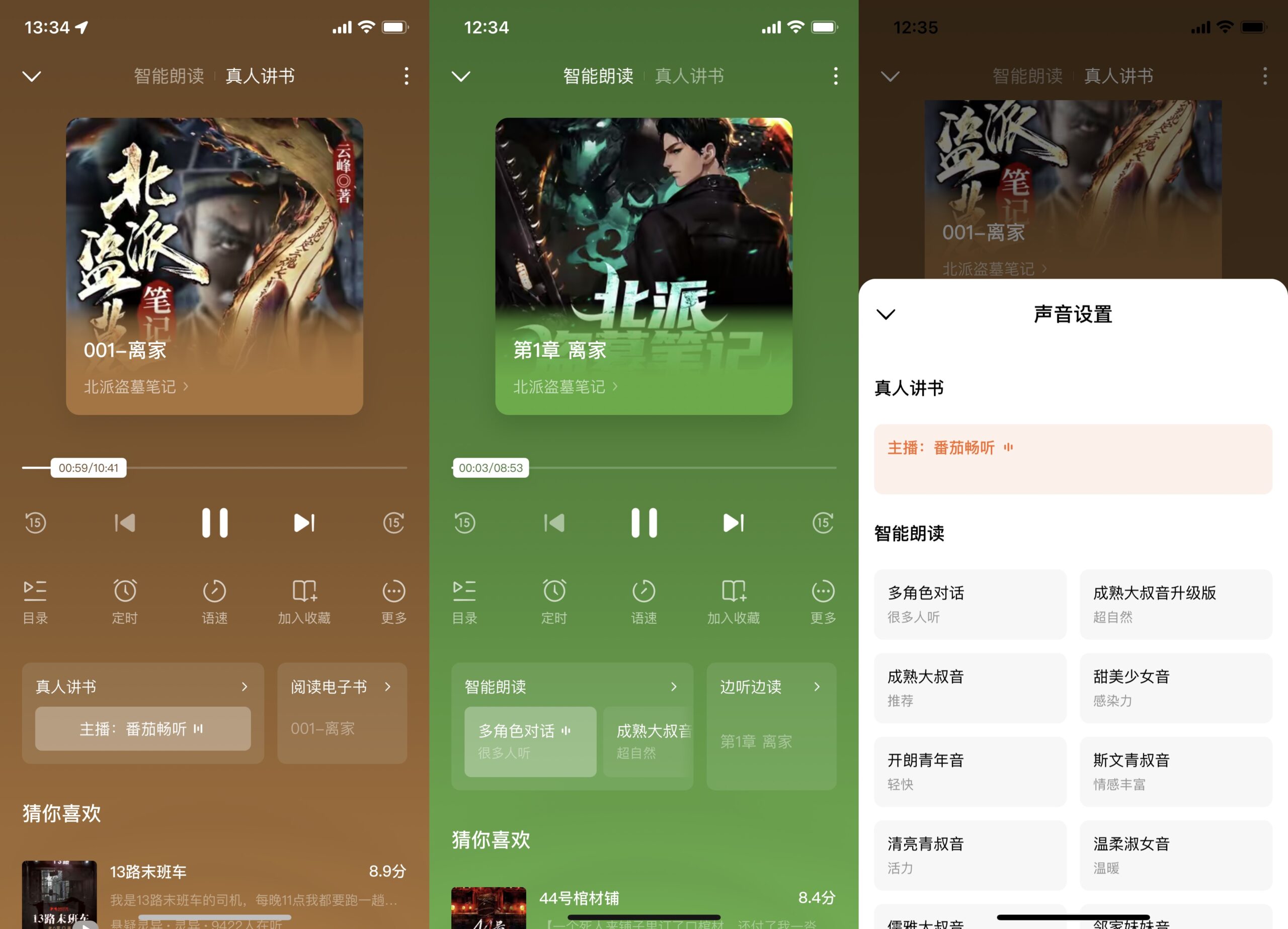 主打功用除短剧以外,渠道还供给了其他前言内容,包含听书、小说等。其间听书支撑两大播映形式:智能朗诵和真人讲书。前者为体系逐字读书的语音,而后者为专门找录音艺人录制的有声书版别。