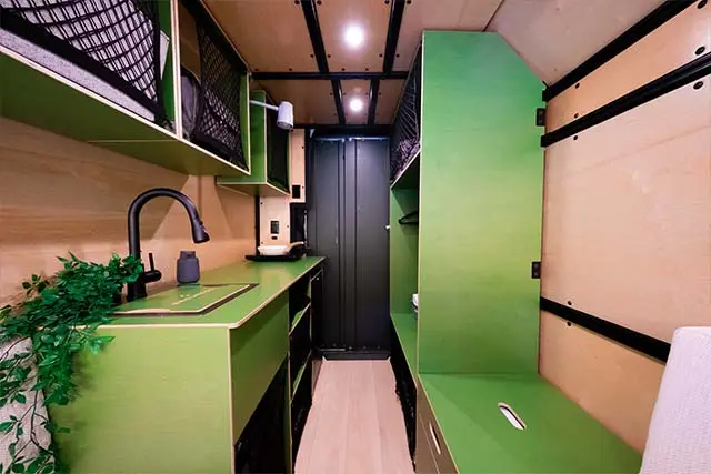“为了规划内饰,咱们从今世北欧野外配备中罗致创意,”夏皮罗说。“可选组件包含一张宽阔的大床、最多可包容 7 人的座位、一张用于作业或用餐的大型拉出桌,以及一个为喜爱冒险的厨师预备的设备齐全的厨房。”