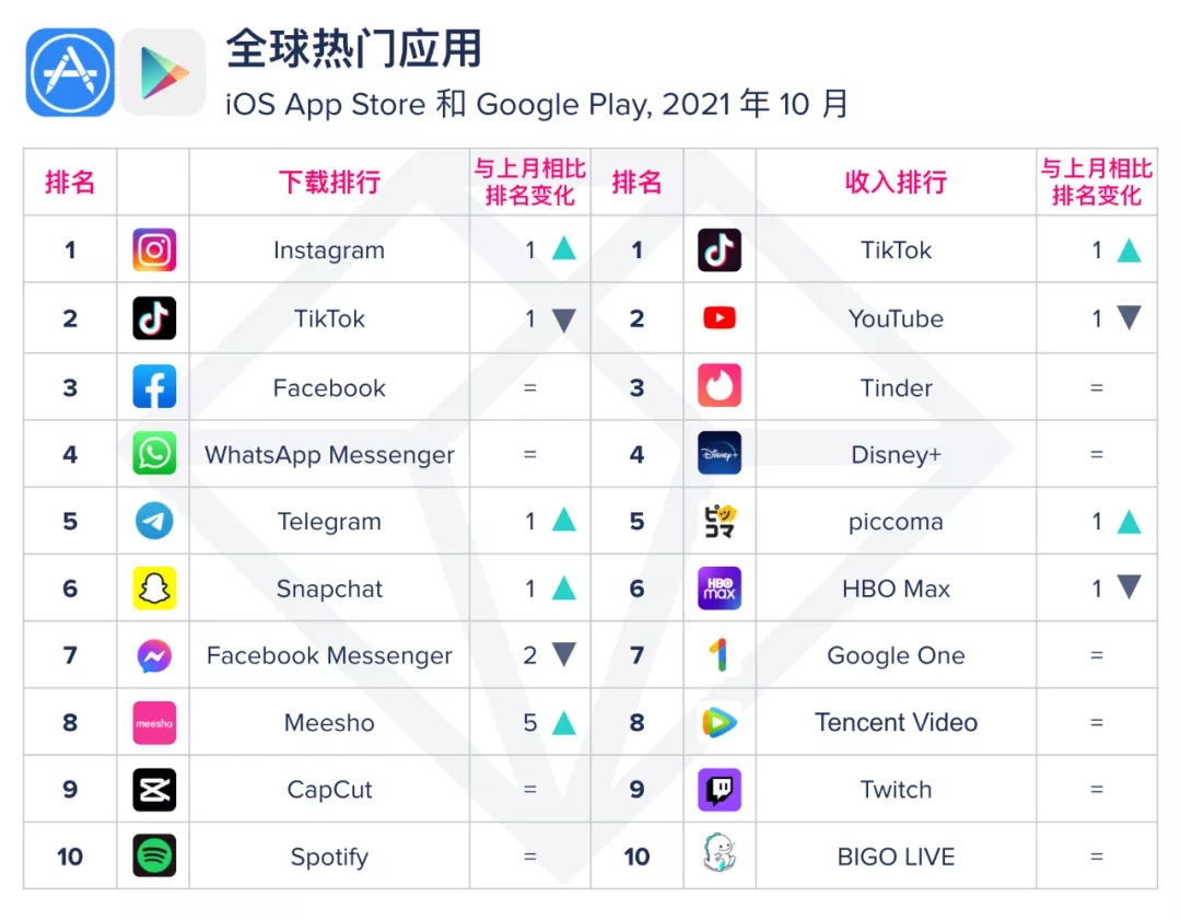 App Annie 10 月指数报告:Instagram 反超 TikTok 登顶全球应用下载榜